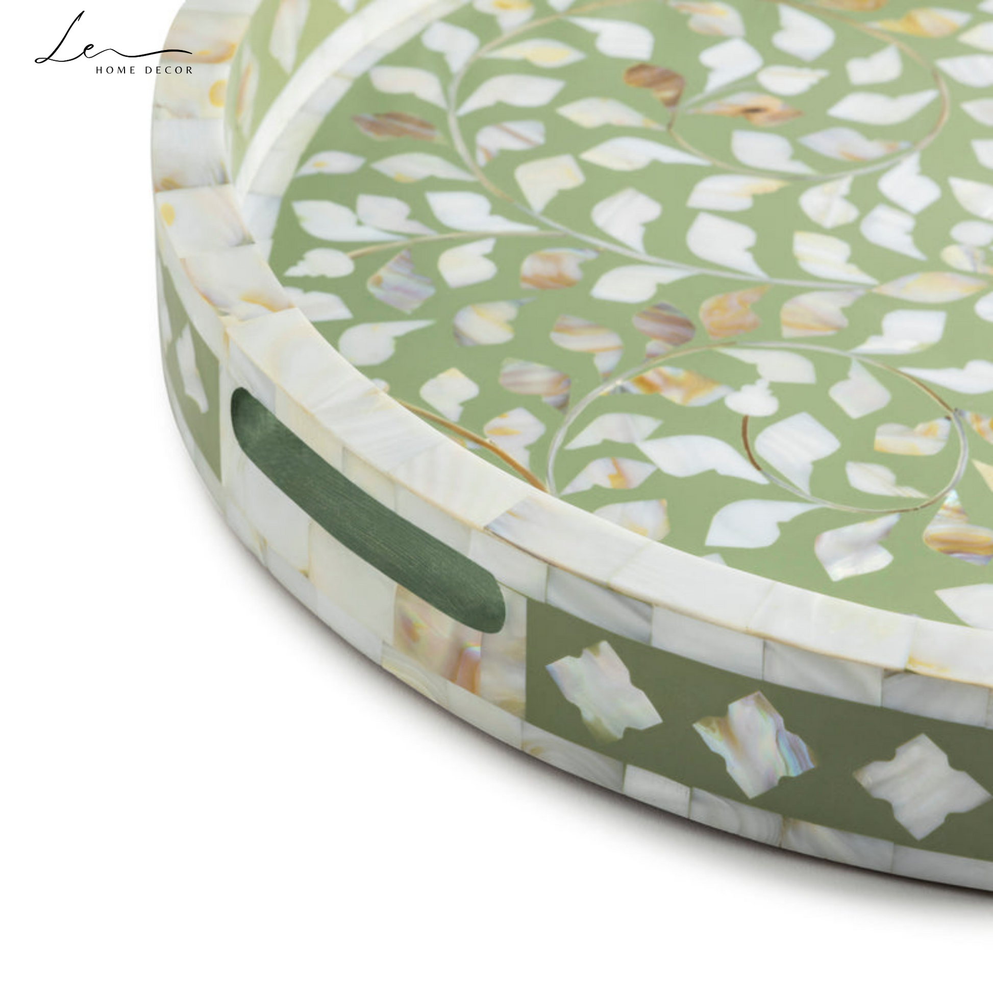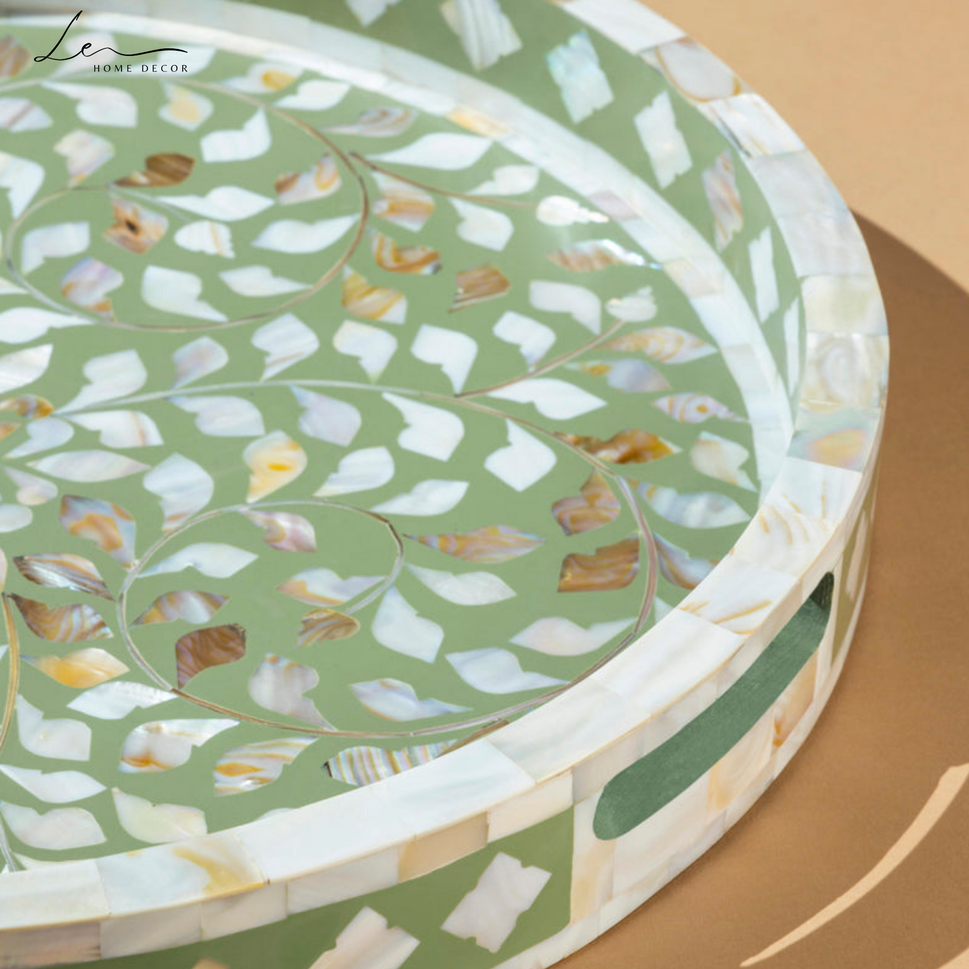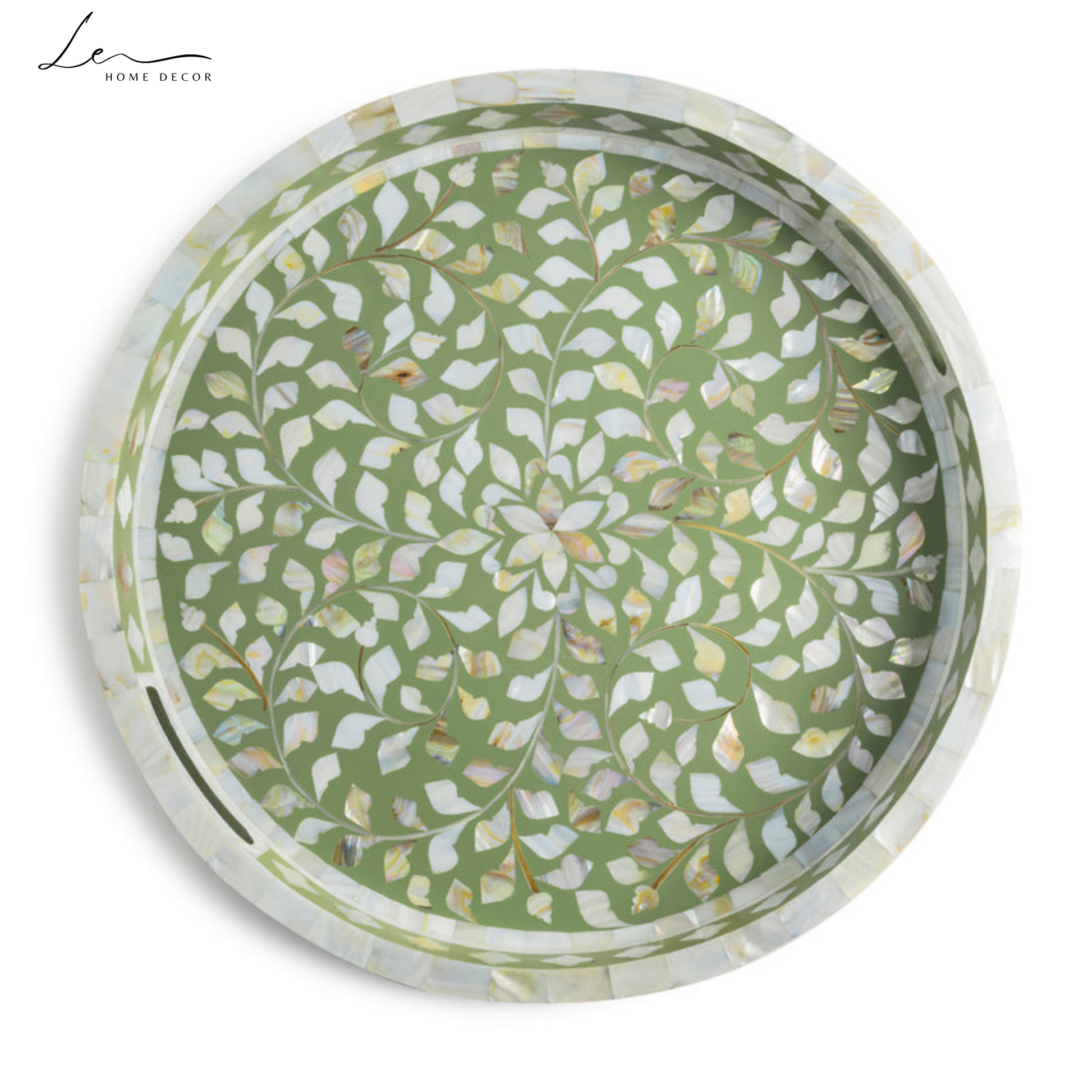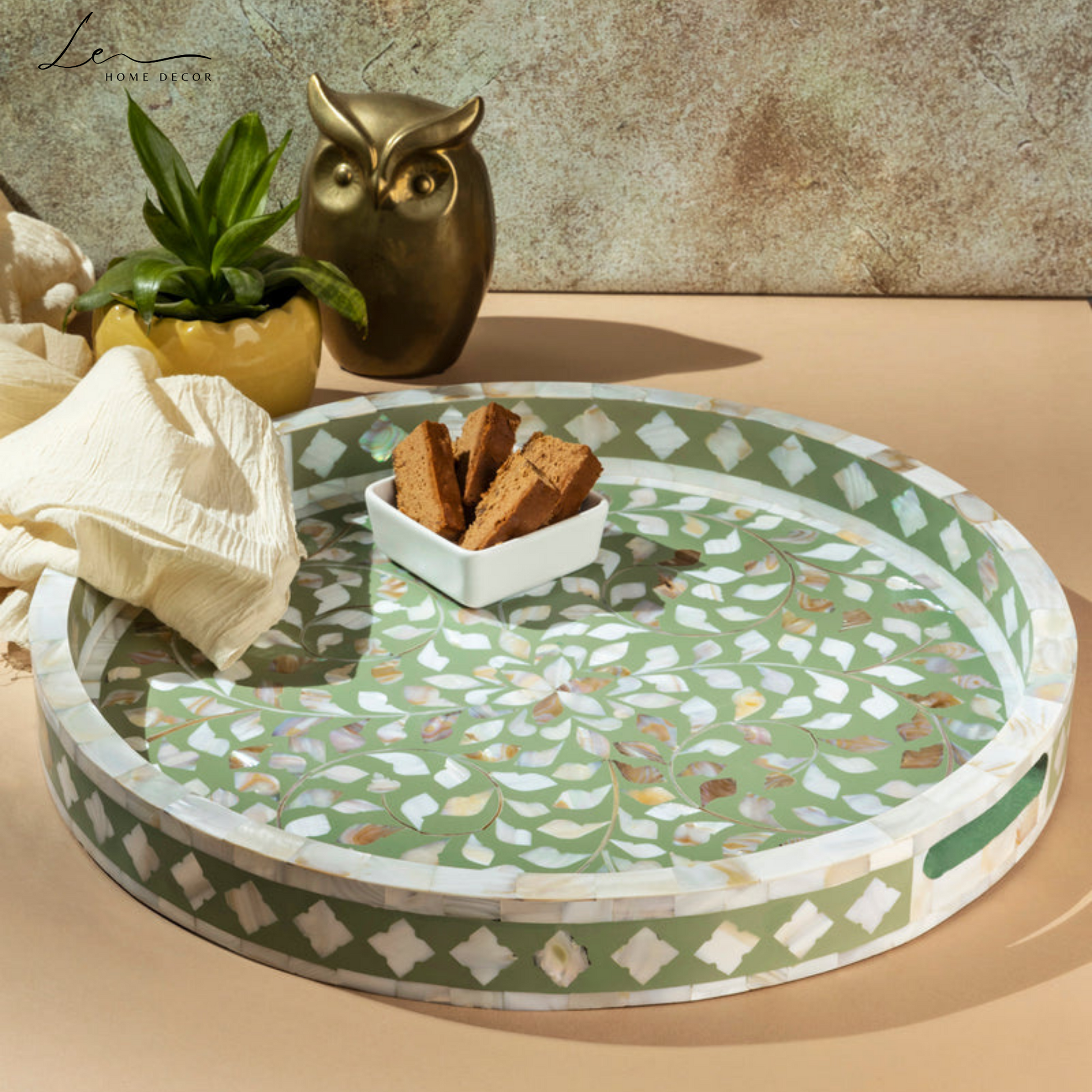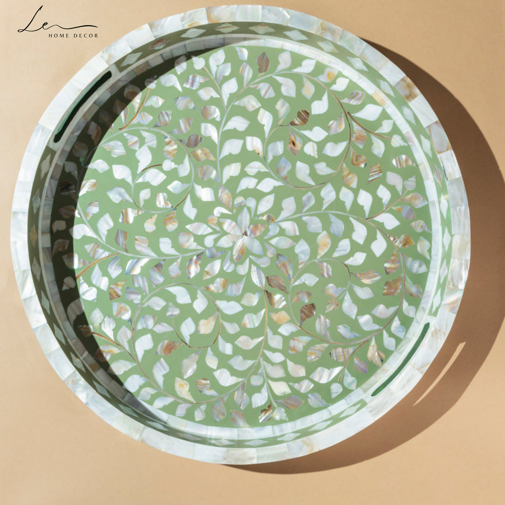 This decorative tray features an intricate floral design. Handcrafted by skilled artisans from Rajasthan, India. The exquisitely designed yet elegant tray is the ideal centerpiece for any space. It can be used as a serving tray as well.