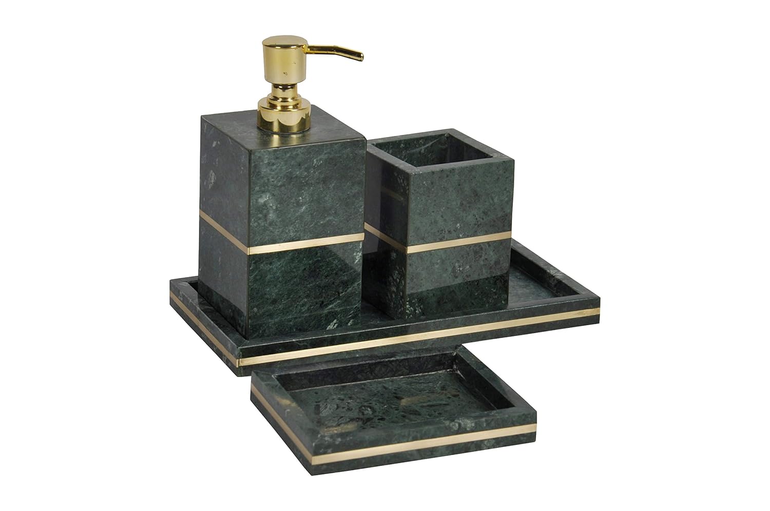 Outfit your bathroom with this premium bathroom accessory set handcrafted from Indian Green Marble.