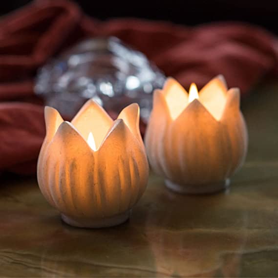 Shaped in a lotus flower when lighted, it symbolizes hope and enlightenment. These tealight holders look great in pairs. Style a small and large tealight holder together for a minimalist modern décor.