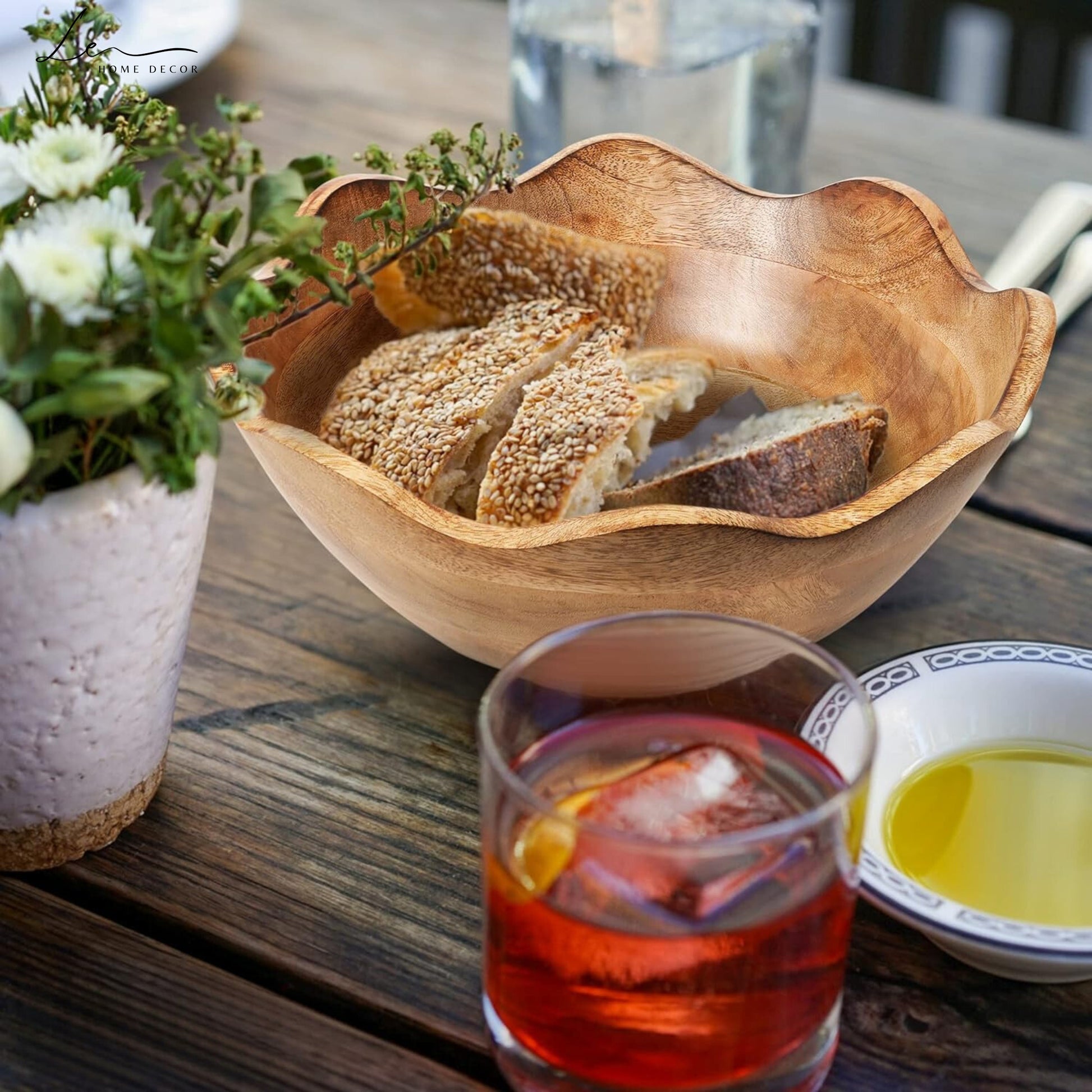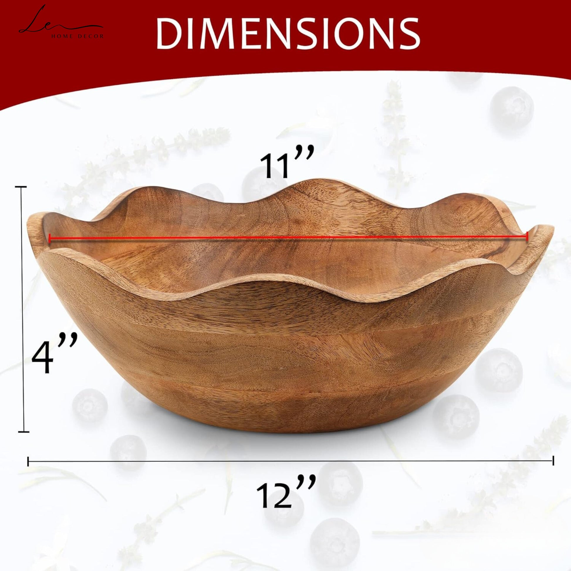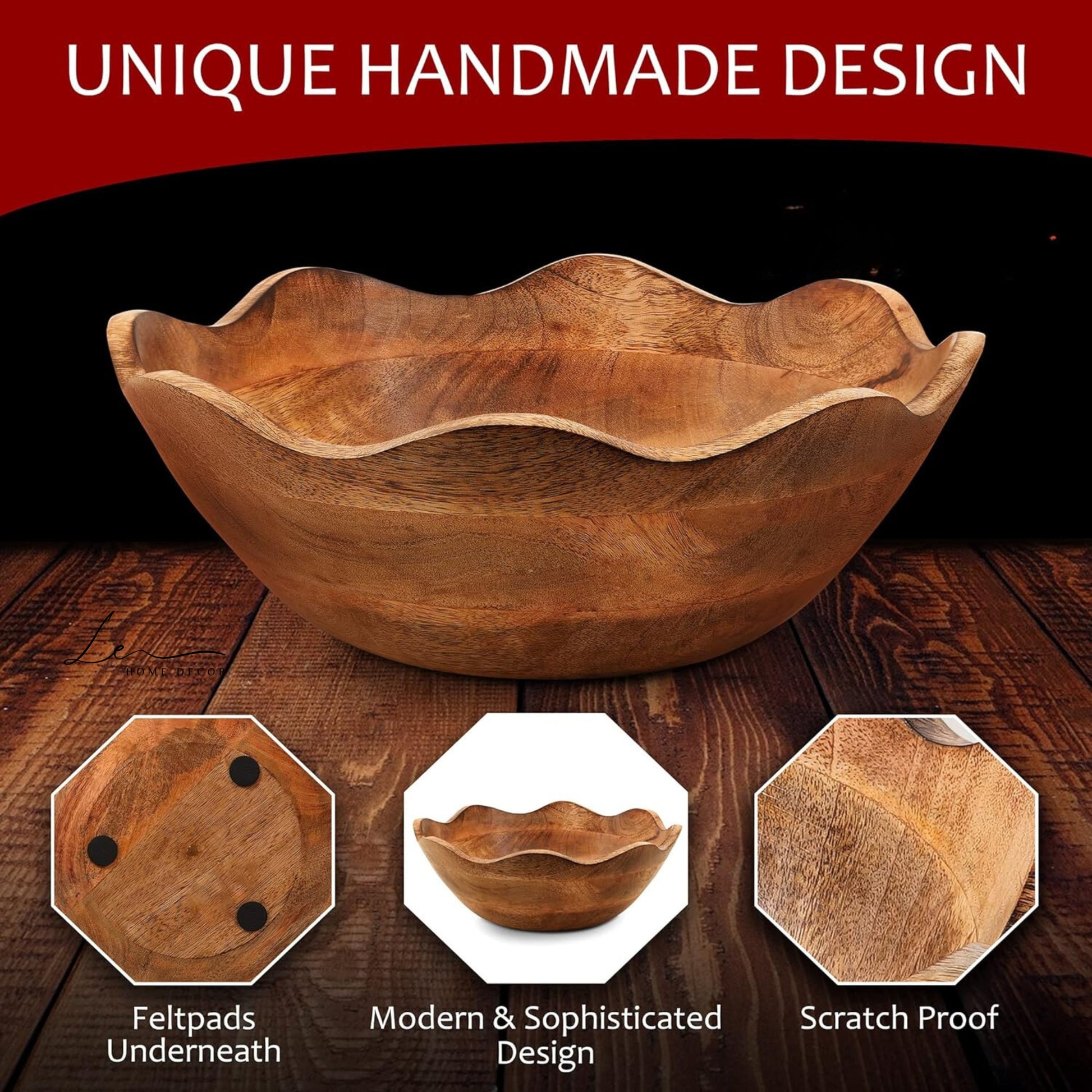 VINTAGE ELEGANCE & CRAFTSMANSHIP - Our bowl decor showcases unique, hand-carved flower patterns with a slip-resistant design, featuring felt pads and a natural-grained finish.